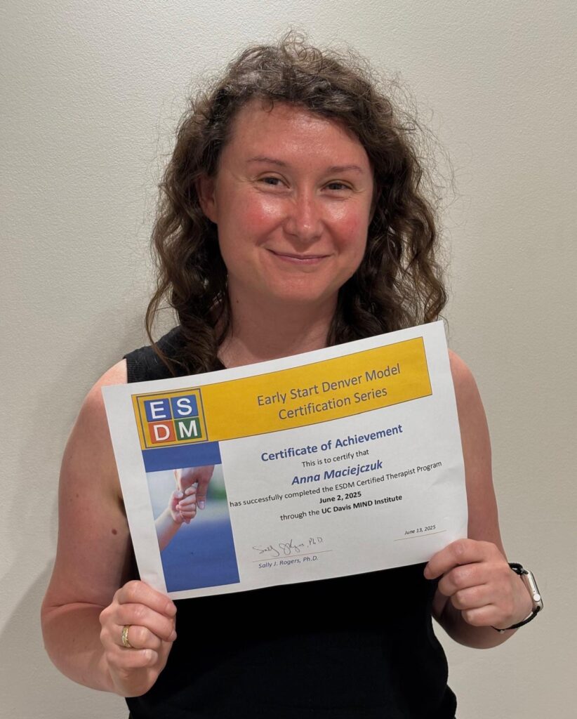 Z ogromną radością informuję o zakończeniu procesu certyfikacyjnego metody ESDM i uzyskaniu międzynarodowego certyfikatu ESDM przez kolejną specjalistkę: mgr Annę Maciejczuk, psycholog, psychoterapeutkę Centrum Adesse w Warszawie.